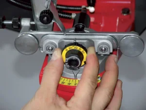 Tilting stega: Mogućnost naginjanja do 10° omogućava preciznije oštrenje chisel lanaca sa oštrim bočnim uglom.