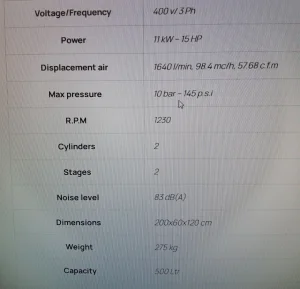 Kompresor 500l iz uvoza u odlicnom stanju bez mana. . . Dve glave . . . Za vise informacija pozovite. Motor 5.5kw , 1400 RPM, 727 L/min po glavi.