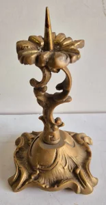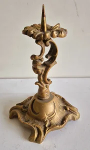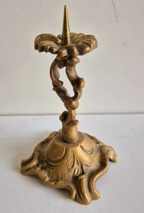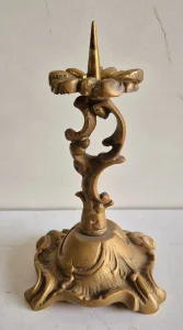 Prelep stari mali raskosni svecnjak od punog mesinga