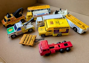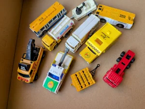 Prodajem vintage set metalnih vozila – idealan za kolekcionare i ljubitelje klasičnih igračaka. Ovaj jedinstveni komplet sadrži razne modele vozila, uključujući šlepere, kamione, autobuse i cisterne, sa prepoznatljivim starinskim dizajnom. Period rane 1990.