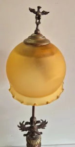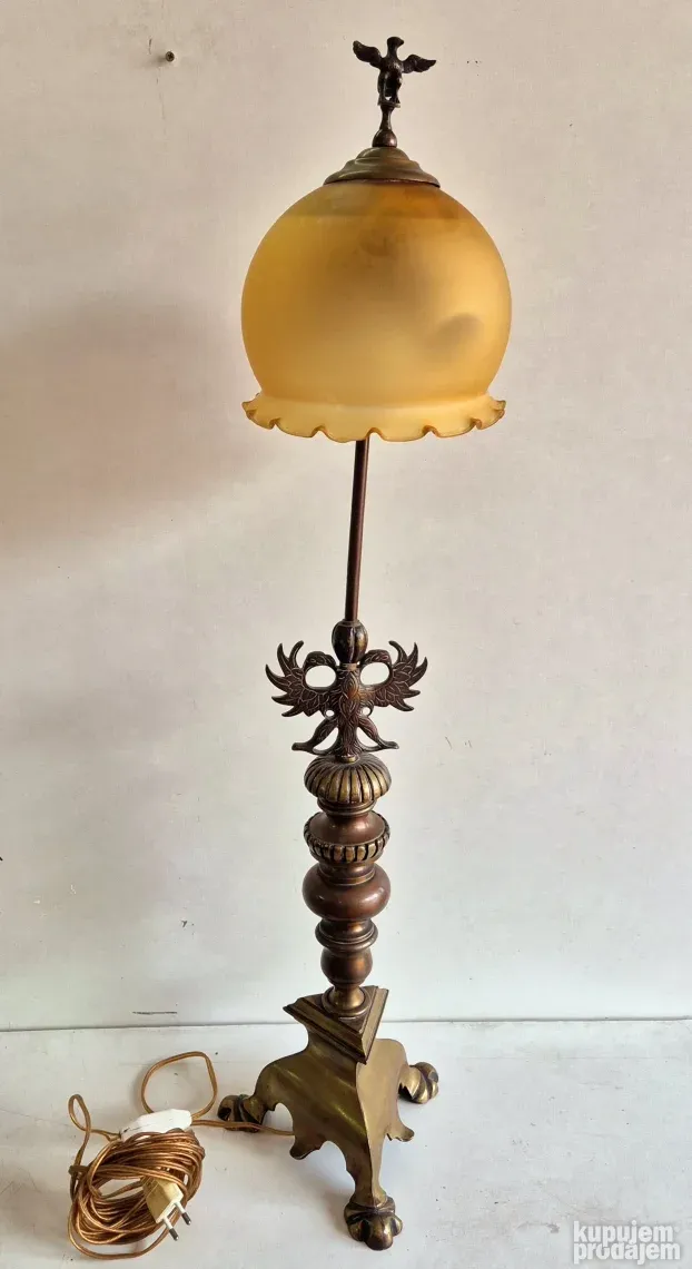 Izuzetna velika stara mesingana lampa sa staklenim abazurom