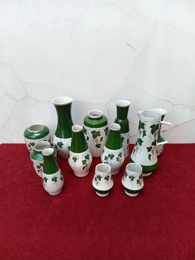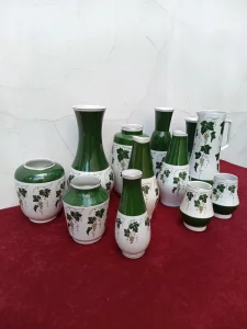 Na prodaju set od 9 vaza, bokal i dve čaše od istog proizvodjača sa dekorom vinove loze i groždja.