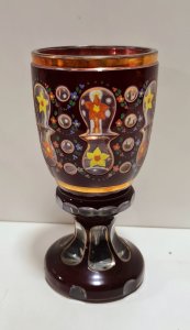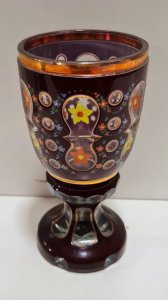 vrhunski primerak u izvanrednom stanju, rubin staklo rucno bojen floralnim emajlom sa pozlatom