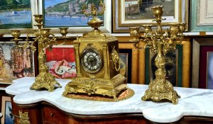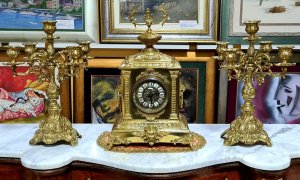 Exkluzivan stari raskosni kaminski sat sa ciracima - Gold bronza