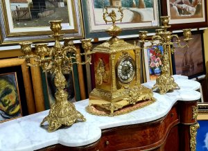 Exkluzivan stari raskosni kaminski sat sa ciracima - Gold br