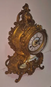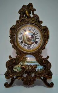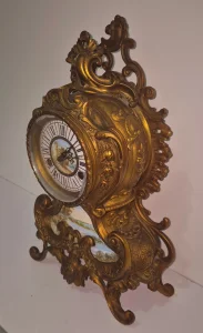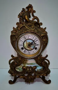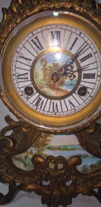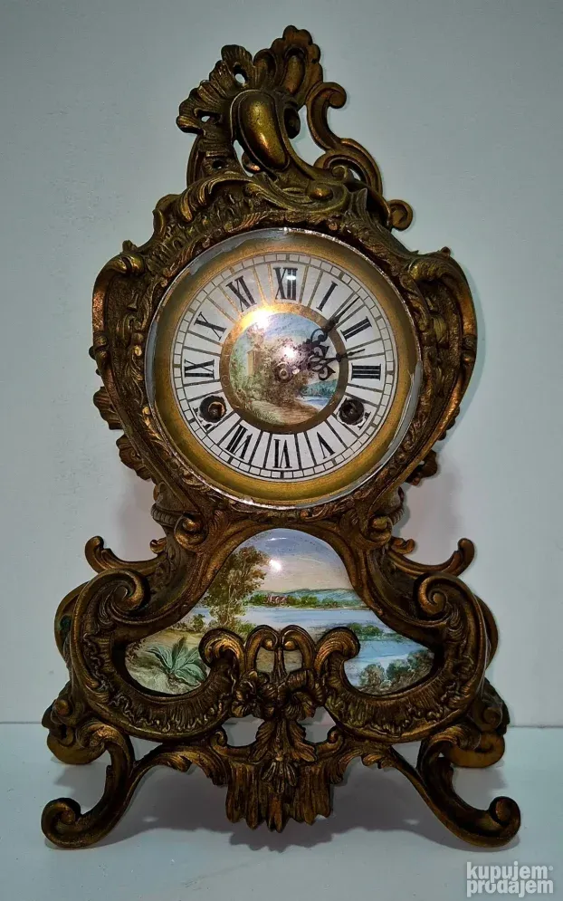 Prelep stari oslikani komodni mesingani sat Luj XV - 2