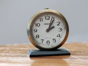 Miniature sovjetski budilnik – kombinuje funkcionalnost i dekorativni šarm, odličan za kolekciju ili vintage display.