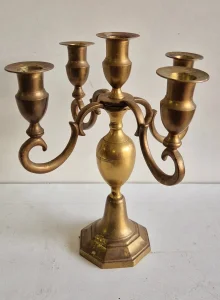 Izvanredan stari mesingani svecnjak za 5 sveca