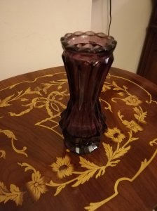 Kristalna vazna visine 15 cm. Kristal ljubičaste boje. Prelepa. Povoljno. Pogledajte i moje ostale oglase.