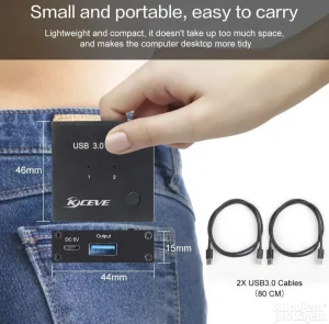 USB 3.0 prekidač za 2 računara, dva računara se mogu slobodno prebacivati preko dugmeta za deljenje 1 USB 3.0 perifernog uređaja. Na primer, zgodno je da 2 računara dele 1 štampač. Dobar pomoćnik za posao!