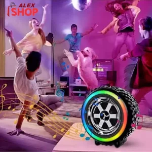 Ovaj jedinstveni Bluetooth zvučnik u obliku „ točka“ sa integrisanim LED svetlom predstavlja savršenu kombinaciju zvučne moći i vizuelnog efekta. Dizajniran je za ljubitelje muzike, zabave i modernog enterijera — pruža snažan 360° zvuk i promenljivu LED rasvetu koja prati ritam muzike, stvarajući neponovljivu atmosferu.