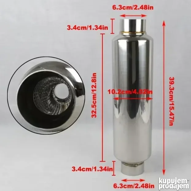 Univerzalni rezonator za srednji deo auspuha. Može se koristiti sa fabričkim ili sportskim zadnjim delom. Poboljšava zvuk i protok izduvnih gasova, čak i sa fabričkim zadnjim delom, a sa sportskim donosi još izraženiji ton. Takođe smanjuje dronovanje i vibracije, čineći vožnju tišom i prijatnijom u kabini.