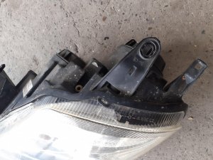 Komplet sa balastom, sijalicama. . . Dva nosaca varena i jedan uvodnik. Plastika na prednjem delu, na falcu, na samoj ivici ostecena. Ovo apsolutno ne utice na funkcionalnost fara, samo na estetiku. Sve je fotografisano!