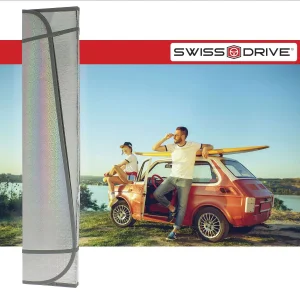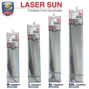 Zaštita od sunca "Laser Sun" XXL (175 × 90 cm)Laser Sun sklopiva prednja zavesa u XXL dimenziji pruža maksimalnu zaštitu od štetnih UVA zraka i smanjuje zagrevanje unutrašnjosti vozila tokom letnjih dana. Izrađena je od visokokvalitetnog reflektujućeg materijala u "laser" efektu, koji produžava vek trajanja enterijera automobila i sprečava oštećenja presvlaka i plastike.