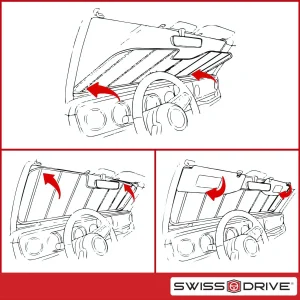 Zavesa se lako postavlja pomoću otpornih vakuum čaša koje obezbeđuju stabilno prijanjanje na staklo. Kada se ne koristi, jednostavno se sklapa i može se odložiti u gepek, zauzimajući minimalno prostora.