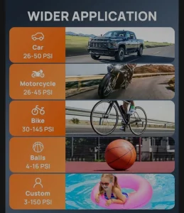 Sa šest različitih režima, možete lako da prelazite između podešavanja pomoću jednog dugmeta. Podesite željeni opseg pritiska i kompresor će se automatski isključiti kada dostigne ciljni pritisak, sprečavajući prekomerno naduvavanje. Nudi režime za bicikle, motocikle, automobile, skutere, lopte, pa čak i ručni režim koji pamti željena podešavanja pritiska, eliminišući muku resetovanja svaki put.