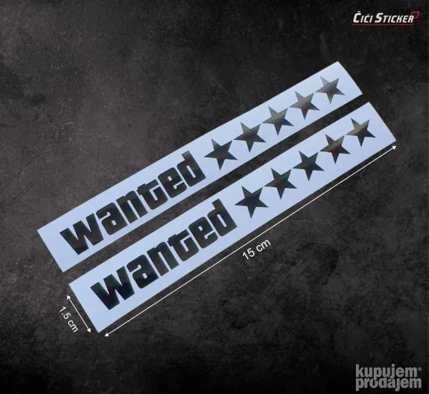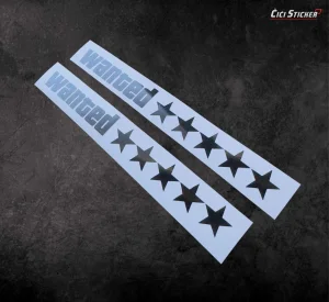 Dodajte poseban stil svom automobilu uz ove atraktivne "Wanted" nalepnice. Ove nalepnice dolaze sa upečatljivim tekstom "wanted" i zvezdama, koje donose hrabar i jedinstven izgled svakom vozilu. Napravljene su od visokokvalitetnog materijala koji je otporan na vremenske uslove, UV zračenje i habanje, što ih čini izdržljivim i dugotrajnim na vašem vozilu.