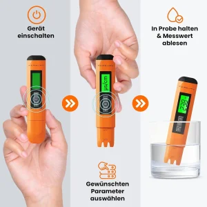 TDS&EC merač meri električnu provodljivost (EC) vode i može da odredi TDS vrednost (ukupno rastvorene čvrste materije).