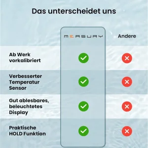 Funkcija zadržavanja omogućava lako očitavanje rezultata merenja, a osvetljeni displej poboljšava čitljivost u mraku ili na jakom svetlu.