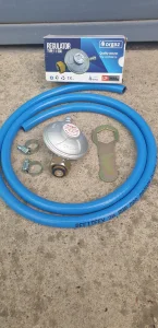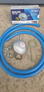 Potpuno nov sigurnosni ventil(regulator) za propan butan gas sa kljucem u kompletu sa crevom za gas duzine 1,5m i 2 selne.