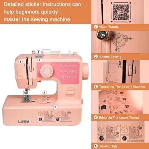 - OPIS PROZIRNE NALJEPNICE: Naljepnice za kratke opise, slijed koraka i glavne funkcije lijepe se na Luby šivaći stroj. Stroj možete naučiti jednostavnim praćenjem naljepnica u hitnim slučajevima.