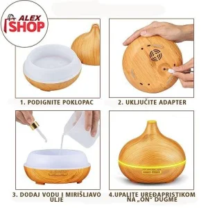Difuzer i ovlaživač vazduha: Dodavanjem kapi esencijalnog ulja u vodu, ispunićete vaš prostor divnim aromatičnim mirisom. Posebnim esencijalnim uljima se mogu stvoriti terapeutske moći, a možete ga koristiti i kao ovlaživač vazduha bez ulja da biste osvežili i rashladili vaš dom.