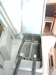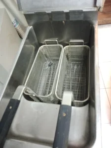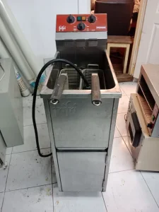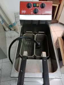 Profesionalna friteza, zapremina ulja 12. l 380v u dobrom i ispravnom stanju. Sa 2. korpe za pomfrit
