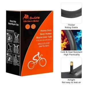 Ova unutrašnja guma je posebno dizajnirana za električne bicikle. Deblja je i izdržljivija od standardnih guma kako bi ispunila zahteve koje nameće veća težina i duži domet e-bicikala. Iako je deklarisana za širine između 2.5" i 3.0", može se rastegnuti i do 3.5”+, ali radi veće sigurnosti i dužeg veka trajanja, preporučuje se korišćenje unutar naznačenih dimenzija.
