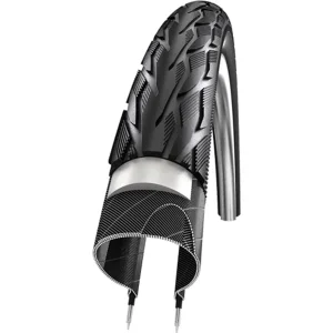 Mnogo više od gume niskog cenovnog ranga. Pristupačna gradska i turing guma sa izuzetnom zaštitom protiv bušenja. 5 stepen Schwalbe zaštite zahvaljujući 3 mm sloju PunctureGuard zaštite. Klasičan dizajn gazećeg sloja je svestran i nudi komforne karakteristike. Opremljen sa visoko kvalitetnom 50 EPI gustinom šivenja i reflektujućim linijama. Preporuka za E-Bajkove koji razvijaju brzinu do 25 km / h.