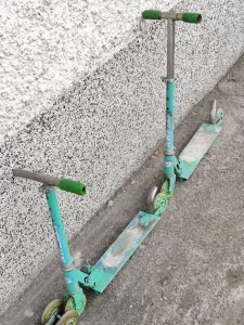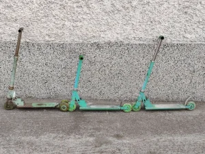 Na prodaju 3 dečija trotineta u korektnom stanju. Zahtevaju malo farbe i dorade, ali se mogu koristiti i u vidjenom stanju. Stoje dugo, to je ujedno i razlog prodaje. Deca su ih odavno prerasla.