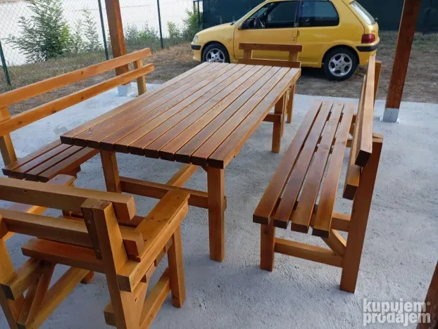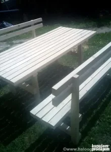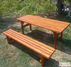 Sto 200x75 cm sa 2 klupe 200 cm i 2 klupe 60 cm 48000 dinara. Za druge dimenzije ili više informacija pozovite 063 716 07 21.