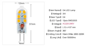 Sijalica G4 LED 3W 12V 3000K Dimabilna, zamena za halogenu
