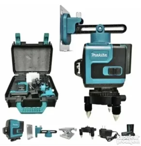 Nivo 4D 360 laserski nivo ZELENI tronožac podesiva platforma magnetni nosač + metalna ploča za montažu na nemagnetne površine Li-jonska baterija daljinsko upravljanje punjač Uputstvo Karakteristike