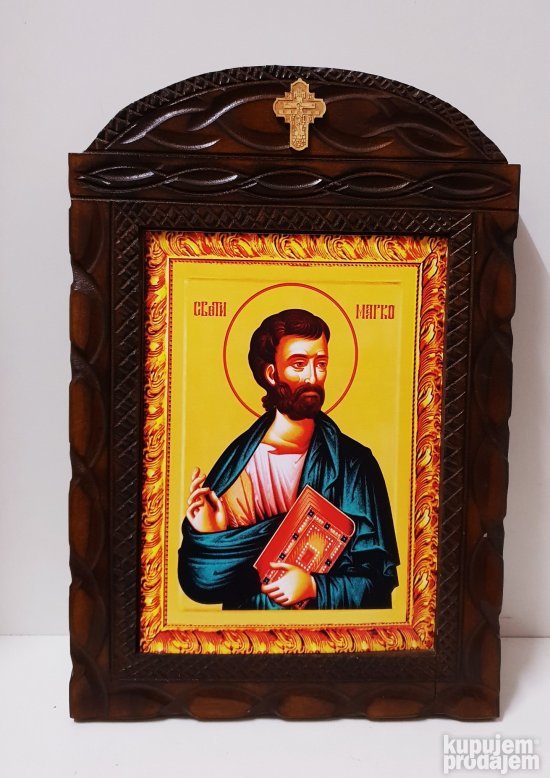 Unikatna Ikona u luxuznom duborez ramu 42x30- Sveti Marko 1
