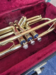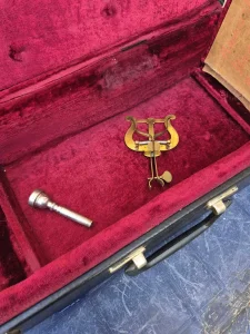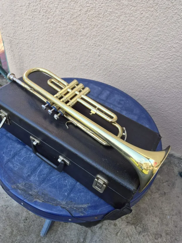 Stara truba iz 50tih godina proslog veka, kompletna u svom ogrinalnom koferu. Duzina trube 55cm.