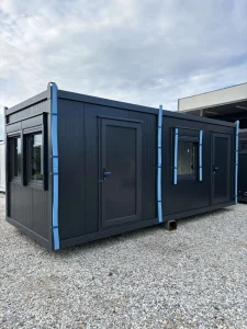 Termoilacioni sendvic paneli 50mm kako zidovi tako i krov , na podu je laminat ispod laminaga je stirodur 20mm a ispod stirodura je vodo orporna ploca . Lako se rasbladi a tako i ugreja za svega par minuta. Vrsimo i dostavu uz dogovor.