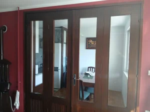 Na prodaju dvokrilna staklena vrata (kombinacija drvo i staklo). Bez stokova. Jedan par vrata je u beloj boji a drugi u braon boji. Razdvajala su radni deo od dnevnog boravka. Vrata su ocuvana