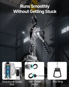 Dizalica ima unapređeni vođeni kanal za glatko podizanje bez zaglavljivanja. Kuka koja se rotira 360° omogućava sigurno korišćenje pod više uglova, sprečava uvijanje i povećava efikasnost kod zahtevnih podizanja.
