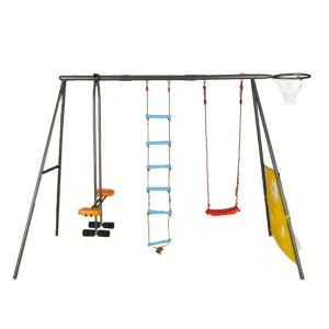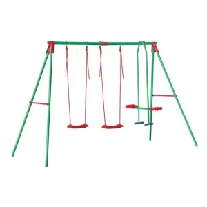 Ljuljaška za decu 3u1 sa 2xjednostruke, 1xdvostruka ljuljaška-klackalica, dim. 400x139x203cm. PE: sedište, uže. Metal: okvir. Sve cevi premazane prahom – letva fi. 50×1,5mm, nogare: fi. 38×1,2mm, poprečna šipka fi 22×0,8mm, ljuljaška-klackalica fi. 25×1,2mm. Uzrast:3+ godine. Dim. pak: 139x34x17cm. Pak: 1 set/karto n.