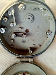stari sat i kuciste , slikano sve bez kljuca ali moze svaki manji kljuc , precnik sata 7,5 cm celog kucista 14,5 cm , stanje rada neispitano ide kao neispravan
