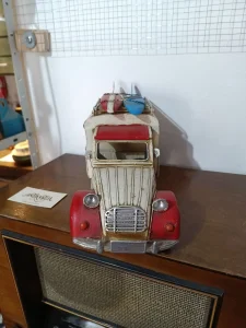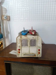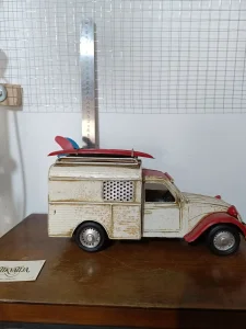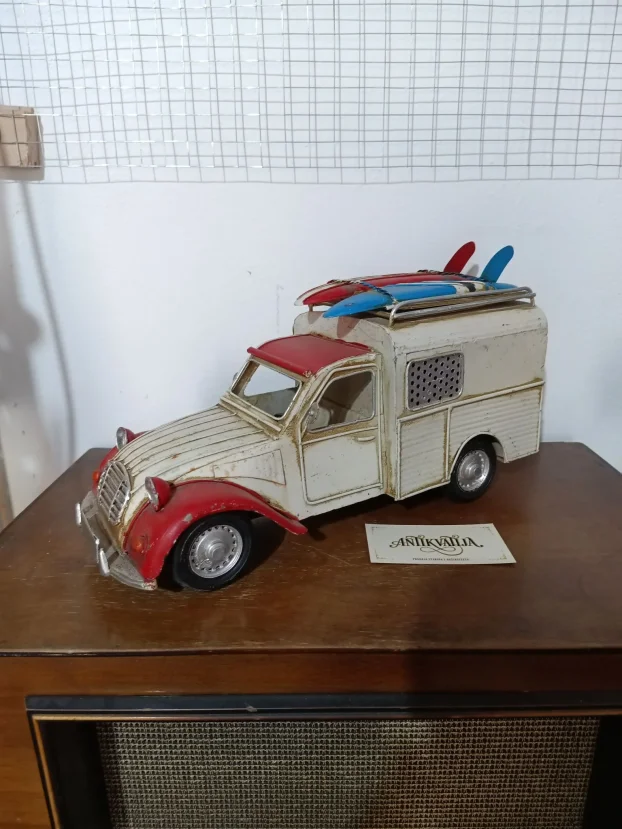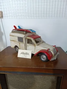Veliki metalni dekorativni model automobila Citroen 2CV Box Duck sa surf daskama.