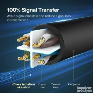 RJ45 Cat 6 UTP Ethernet kabl dizajniran za ukrštene računarske veze sa switch-om, ruterom ili pretplatničkom utičnicom.