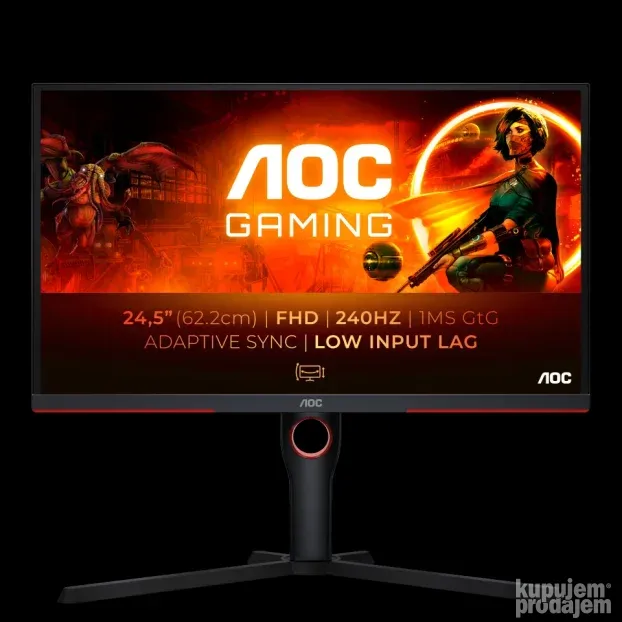 Na prodaju GAMING monitor 25" AOC 25G3ZM BK Full HD 1920x1080, VA panel, 240Hz, 0.5ms, Free Sync, height adjustable stand, 178/178, PIVOT, 1xDP 1.2, 2xHDMI 2.0 novo domaca garancija 3 godine.
