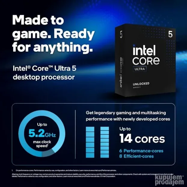 Na prodaju procesor Intel Core Ultra 5 245KF 3.6Ghz turbo 5.2Ghz LGA1851 novo domaca garancija 3 godine.