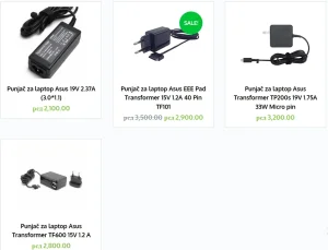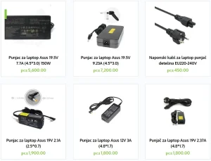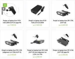 Punjač za laptop Asus 19V 2.37A (4.8*1.7) рсд1,800.00 Punjač za laptop Asus 19V 2.37A (3.0*1.1) рсд2,100.00