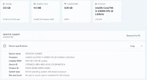 - Procesor: Intel(R) Core(TM) i5-4300M CPU @ 2.60GHz (Haswell generacija)
