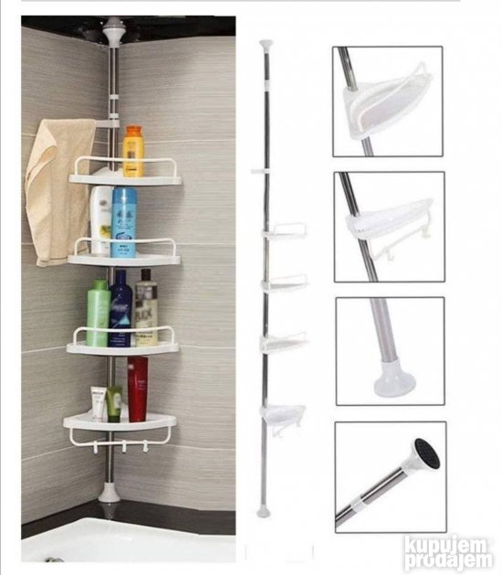 Polica za kupatilo-kupatilska policaSavršena polica za kupatilo. ▪️Praktična, zauzima malo prostora. ▪️Podesiva po visini. ▪️Lako se montira. Postavite jedan kraj na kadu ili pod, a drugi na plafon. Svojim dizajnom se lepo uklapa u svako kupatilo. *Novo u originalnom pakovanju
