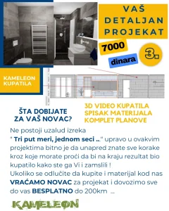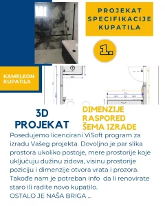Ukoliko imate potrebu za izradom precizne 3d vizuelizacije, i detaljnom specifikacijom potrebnog materijala za Vaše kupatilo od kanalizacije do instalacionog materijala, pločica i sanitarija možemo to uraditi za Vas.