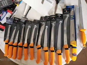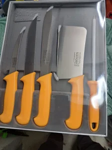 Oštrač ručni za kućnu upotrebu sa vidijom i keramikom za oštrenje cena mu je 1800 din. Masat od 30cm duzine 8500 dinara, omamljivači na struju sa cenom od 4000 hilj, omamljivači na baterije 9000 hiljada, pištolji za stoku 6000 hilj, imamo i rezervne delove udarne igle , opruge sa gumicomk(700din) itd. Municiju za stoku i bikove po ceni od 70-80 din za stoku, noževe Dick org. sve veličine i po najpovoljnijim cenama takođe i masati kao i sečke za pečenje, kao i Wiktorinox nozeve. . Najnovije na tržištu i najbolje proverite nazovite 00-24h
