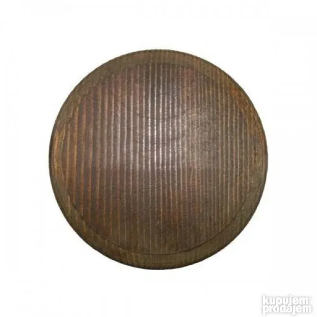 Daska za trofej kljove vepra, prečnika 20cm, izrađena od borovine, zaštićena sa prednje strane sandolinom u tamno braon boji.